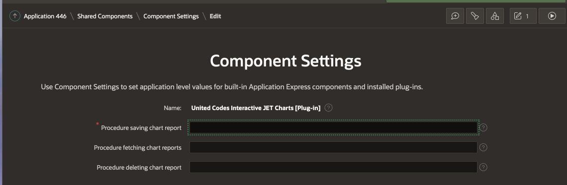 One point of attention, in the last step, when you install the plug-in it will prompt the Component Settings and you have to define which Procedure you want to use to save the charts. This plug-in will save the end-user settings in a table.