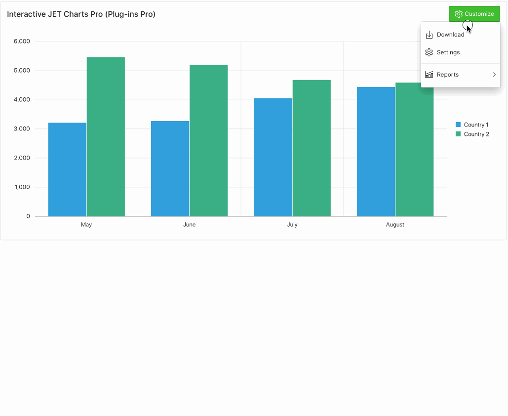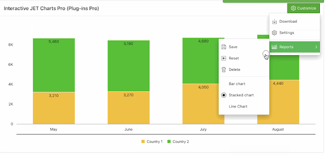 In the animated gif, I only did a few customizations, but there are so many more things in this plug-in! In the next example I hide and show a series, so you can focus on a single data set and I change a series chart type and color.