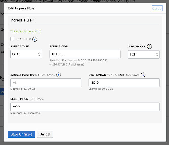 Add the port AOP is running on. By default, AOP is running on port 8010, but you could change that in the instance if you wanted, and hit Save Changes: