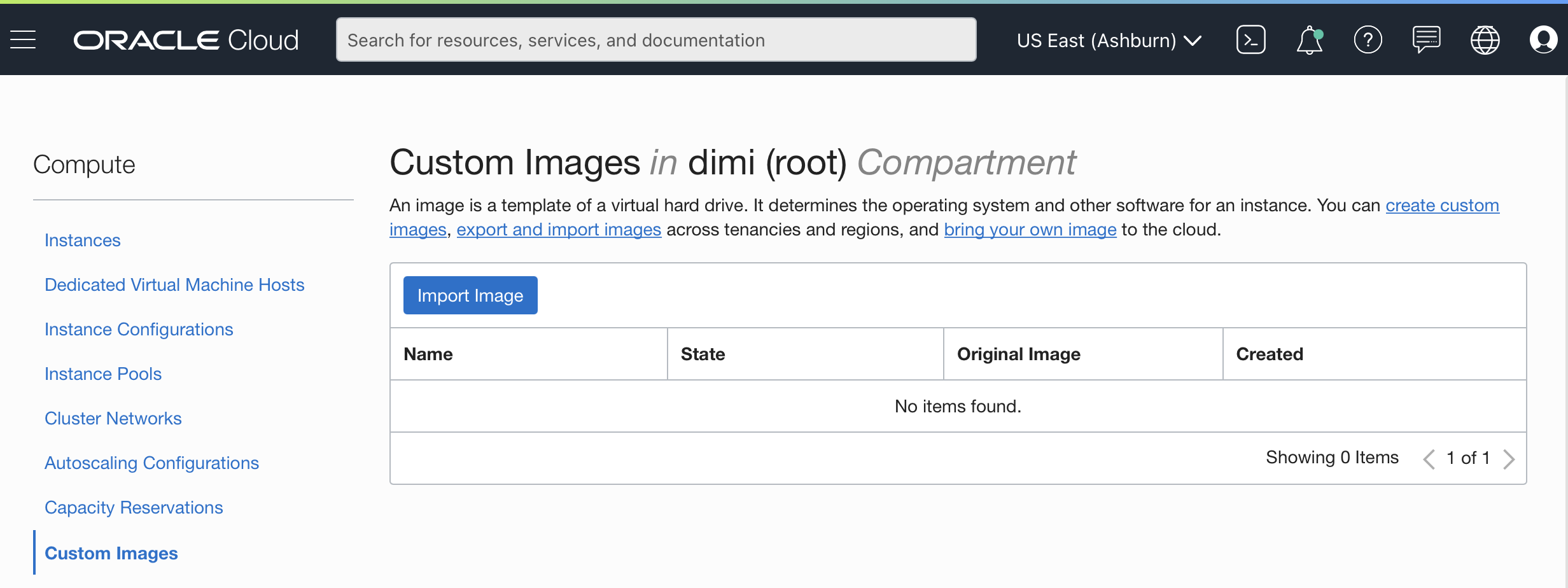 Go to your own Oracle Cloud dashboard and click Compute - Custom Images: