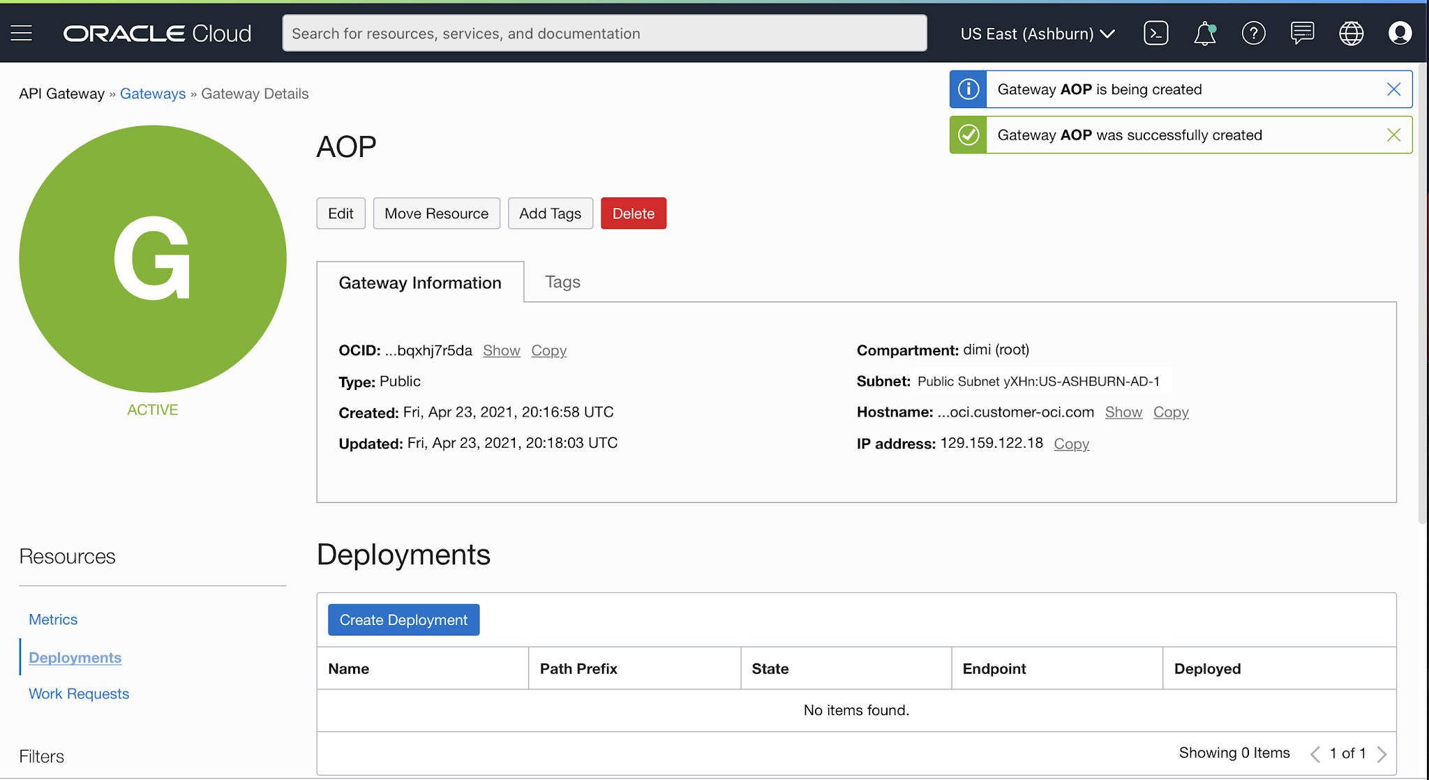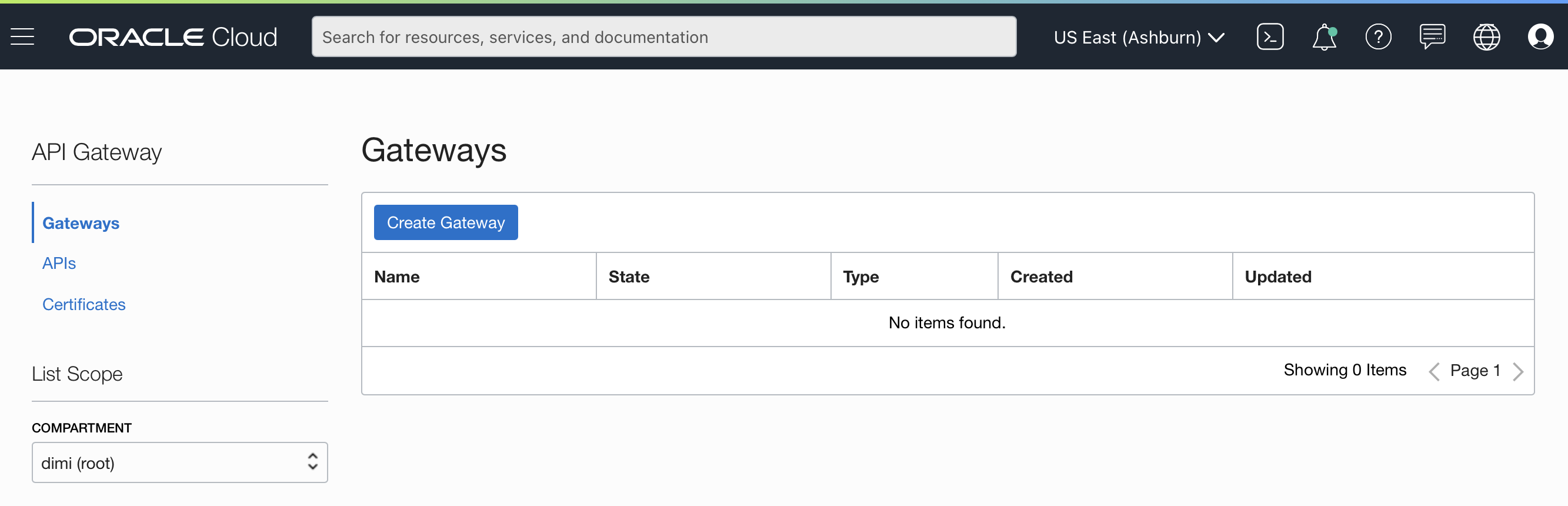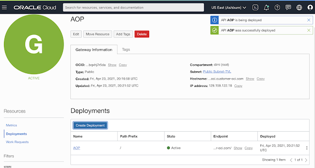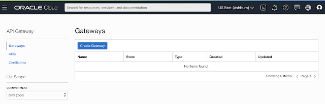 (3) The issue with the APEX Service is that it only allows HTTPS calls. Instead of dealing with SSL certificates, we will make use of the Gateways feature in the Oracle Cloud which you find under Developer Services - API Management - Gateways