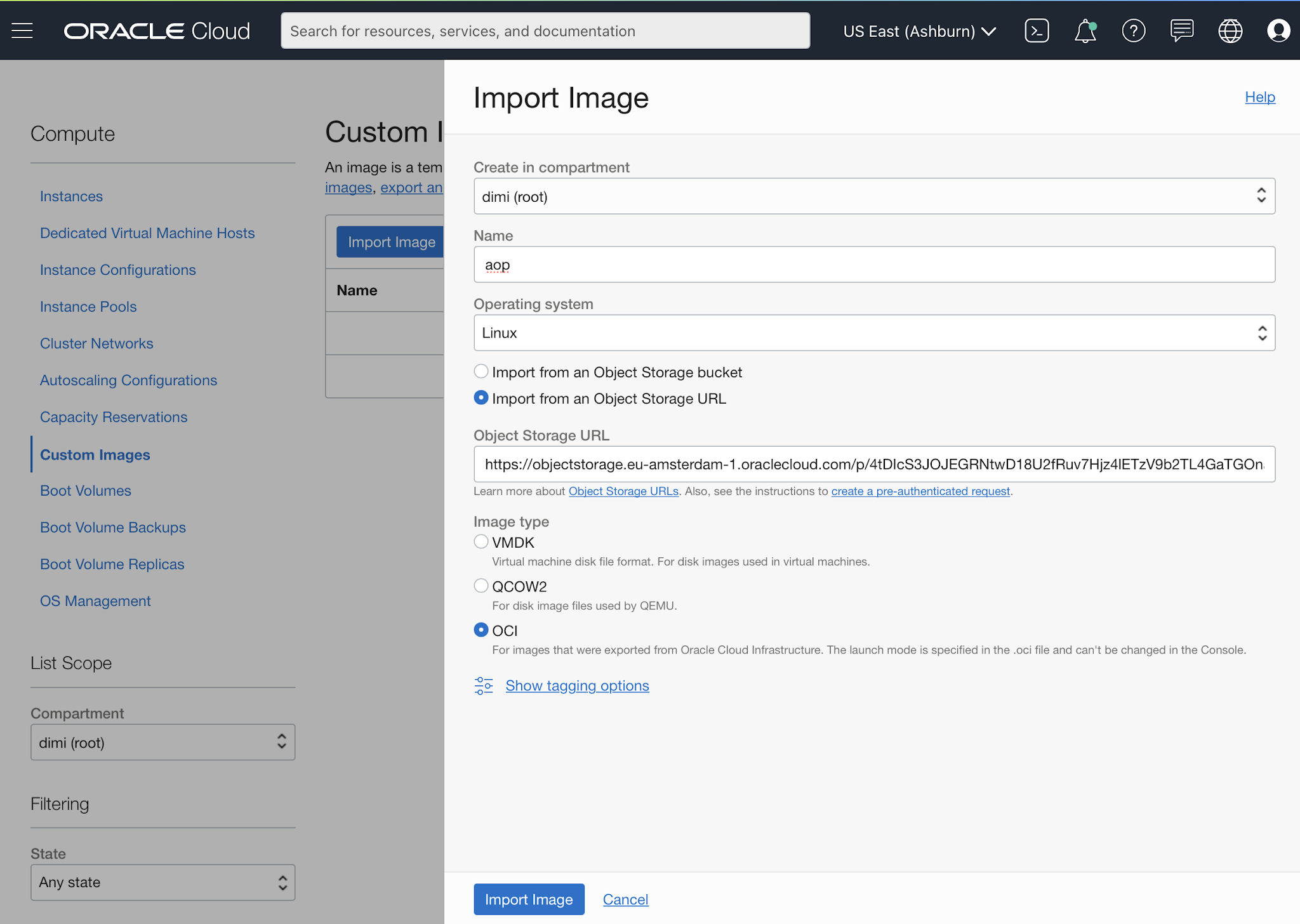This will copy the URL of the AOP image, which we will import in your own Oracle Cloud. (FYI we are focussing heavily on the ability to let you run your own AOP instance in the Oracle Cloud, so in the Oracle Cloud section on our website, you will find more ways to run AOP).