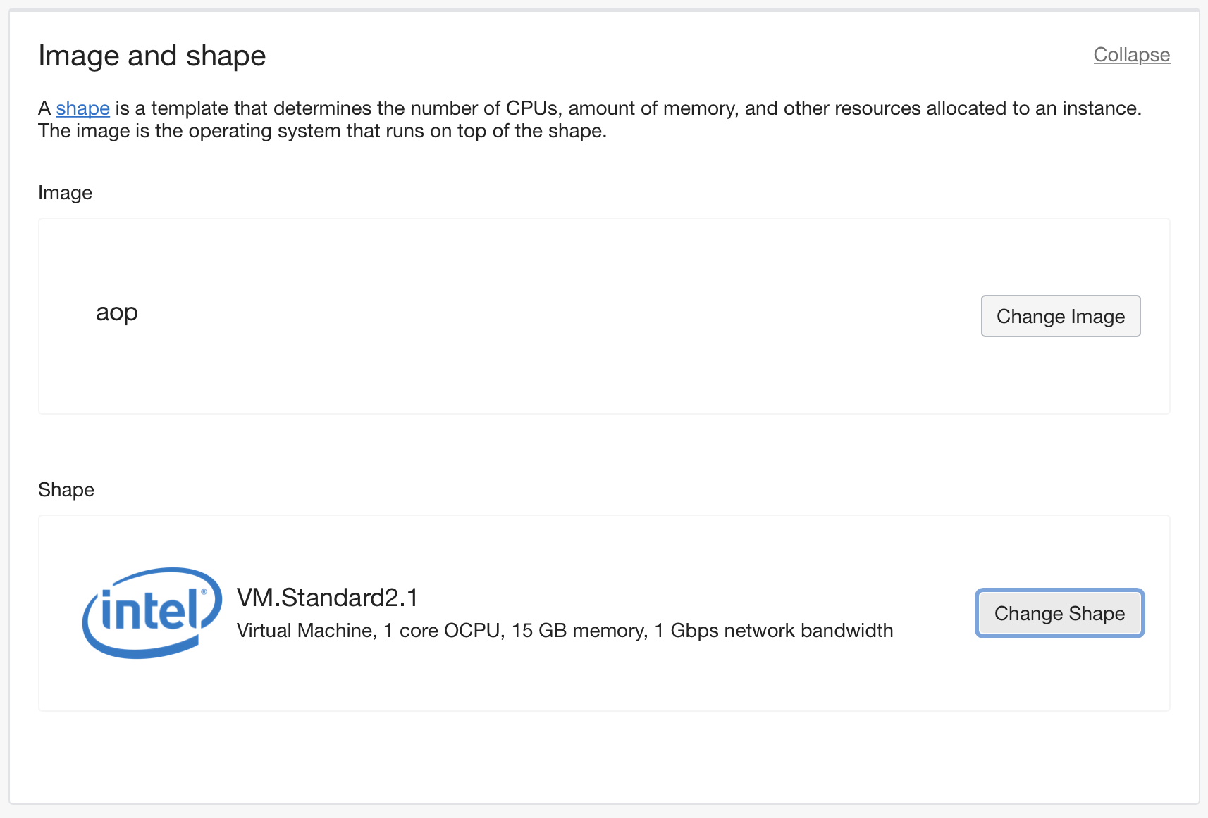 Give the instance a name, select where you want the Compute instance to be, and select an Image and shape: